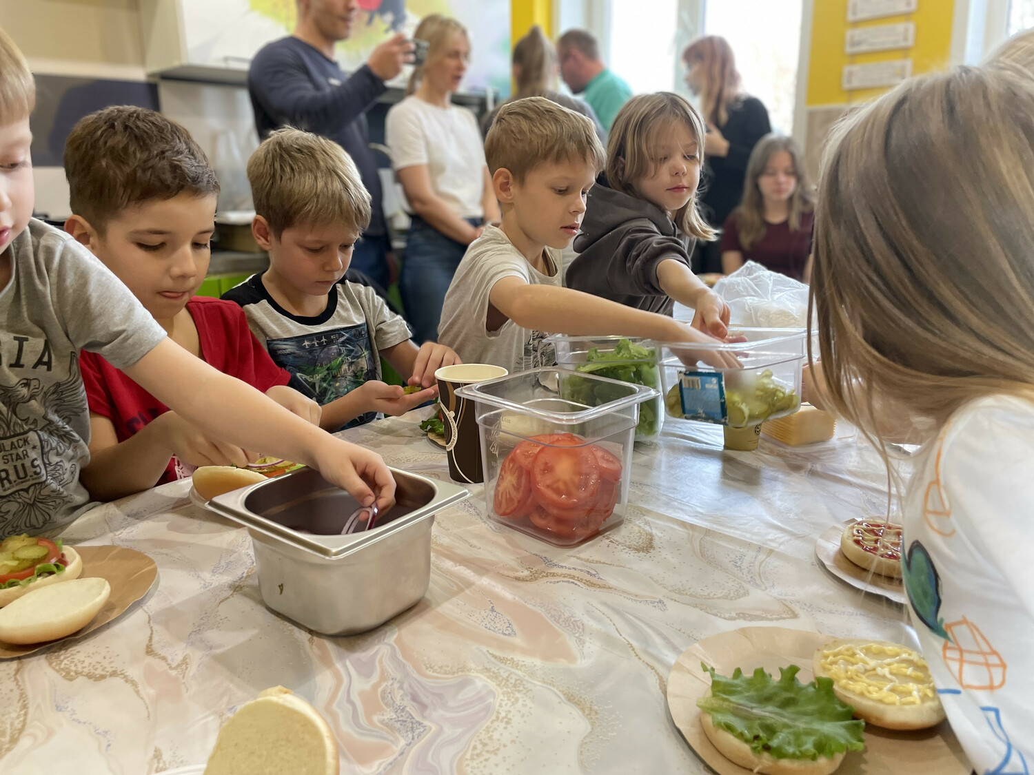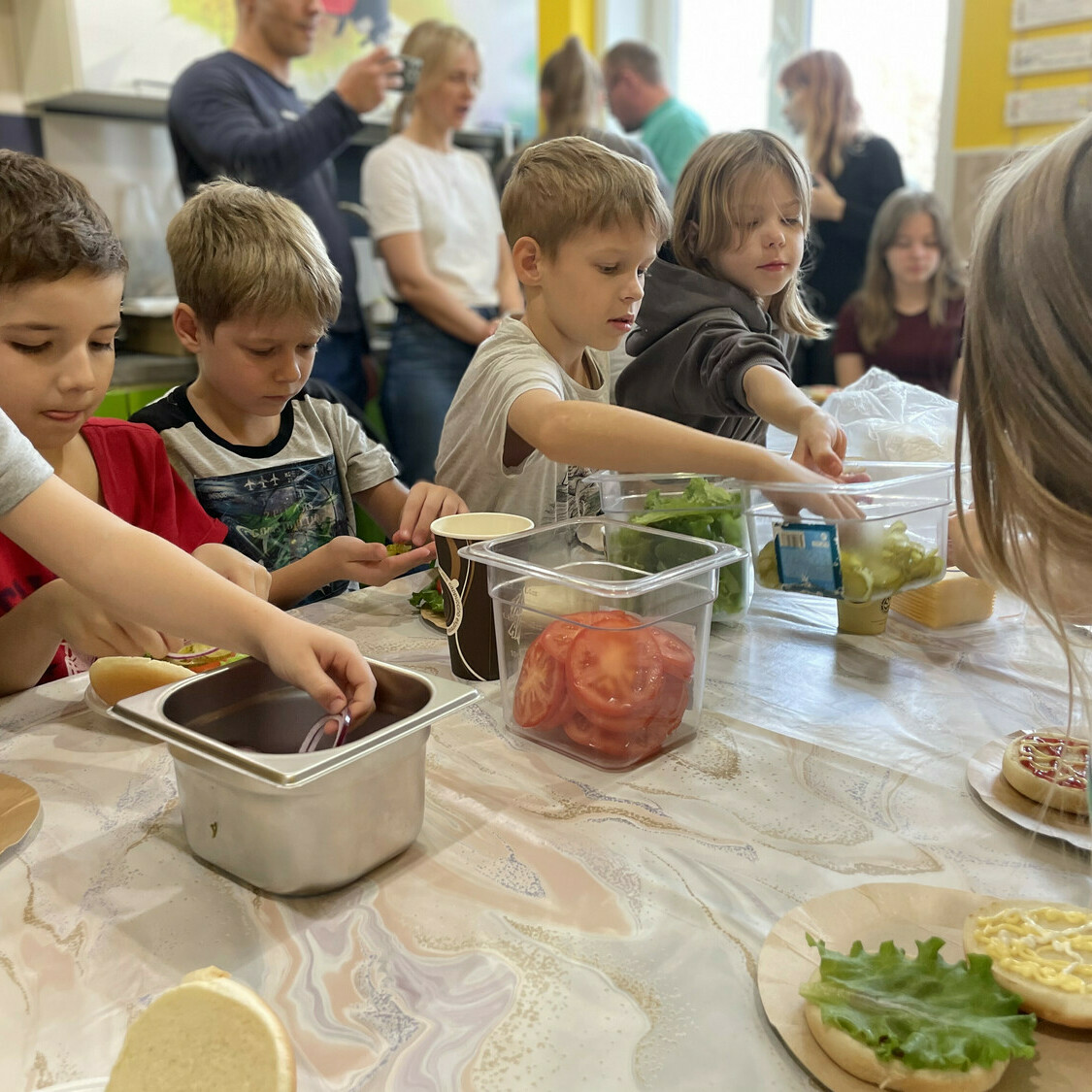 Под руководством инструктора дети сделали себе вкусные бургеры. После урока дети получили в подарок для себя и друга шоколадные машинки. Были собраны положительные эмоции детей и их родителей.