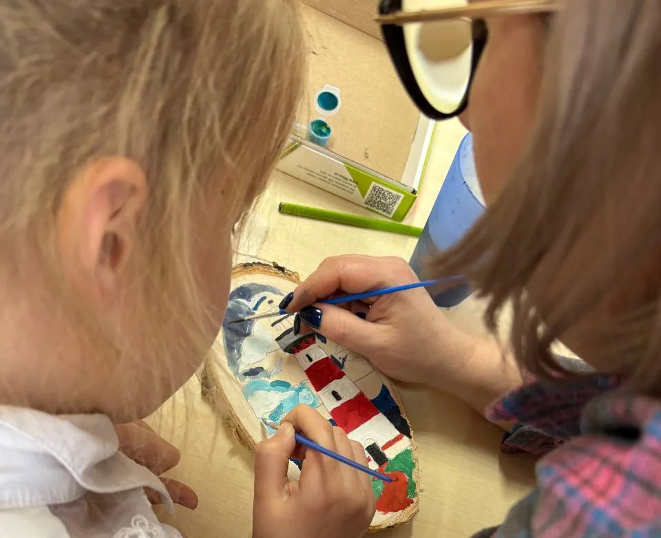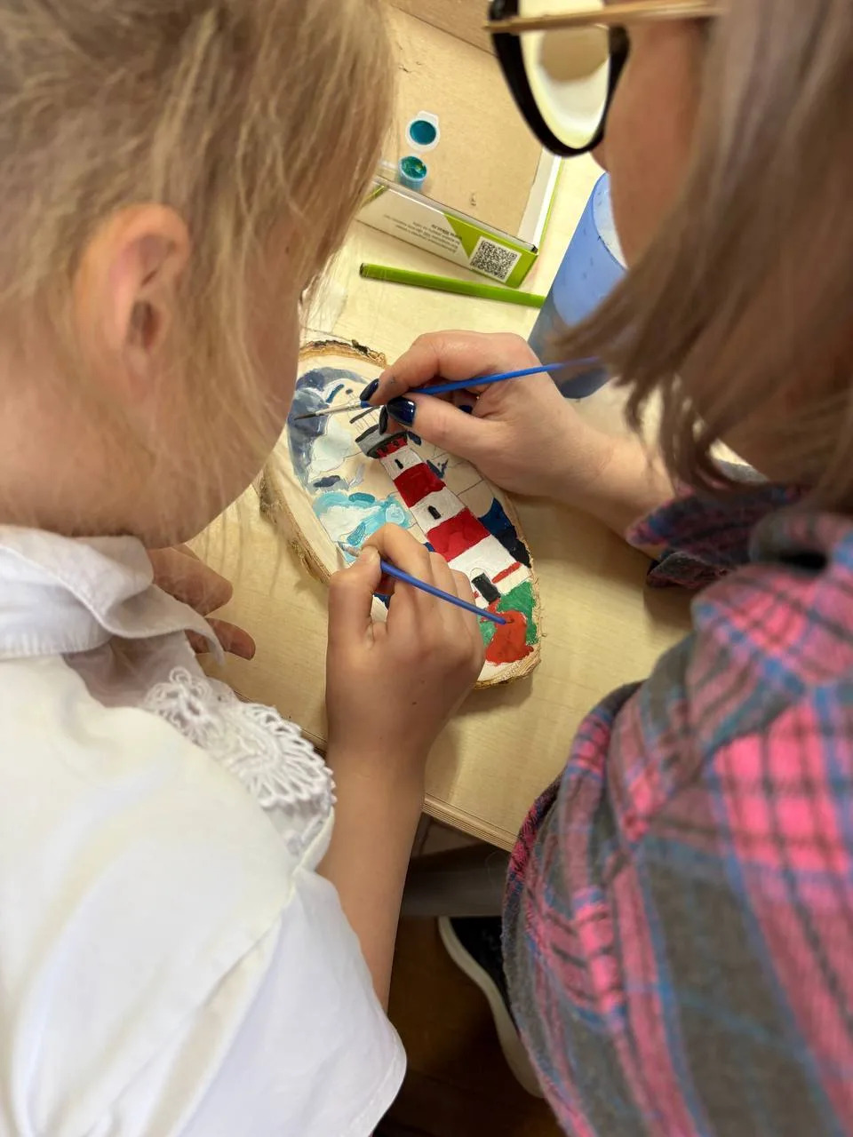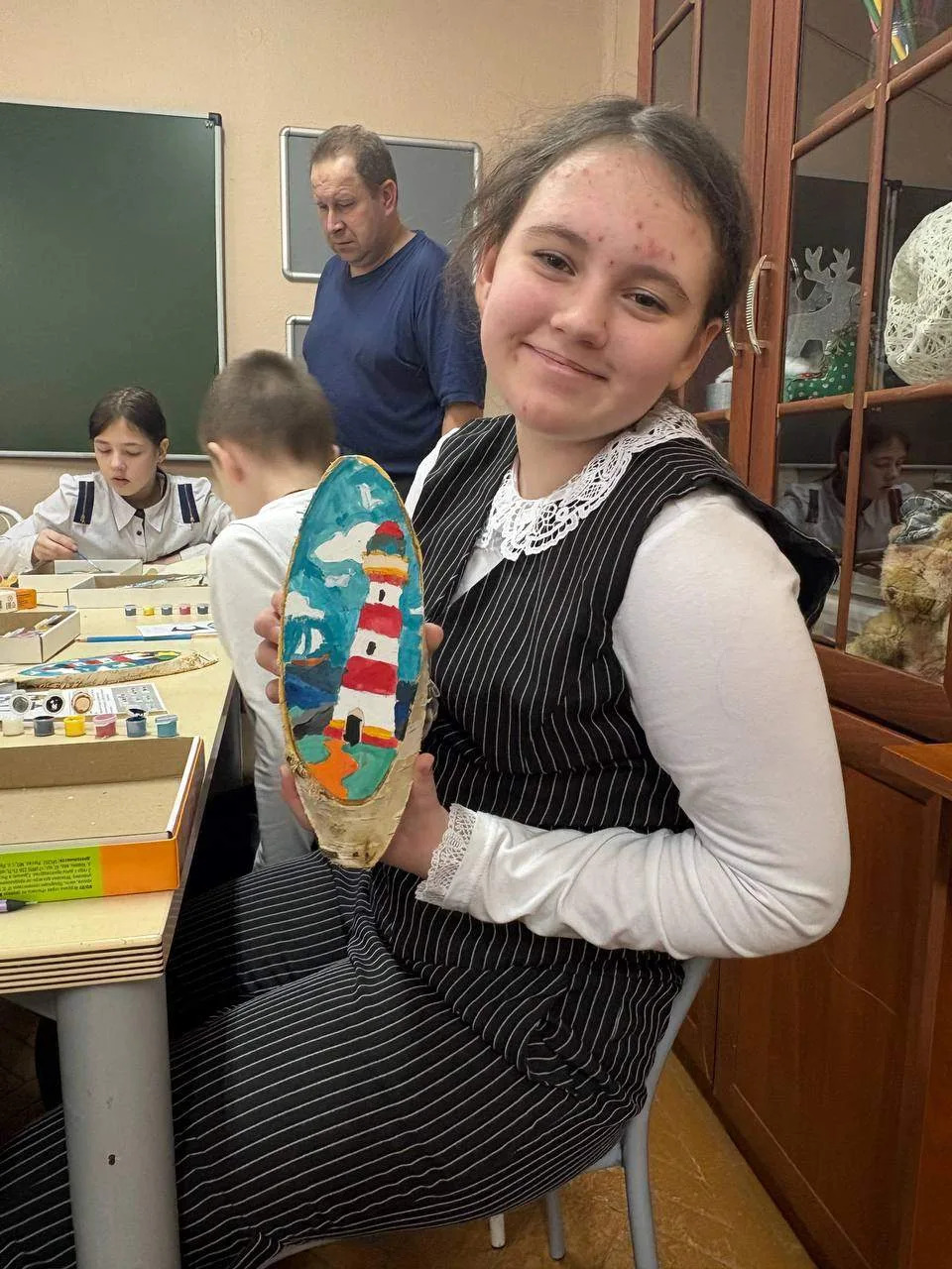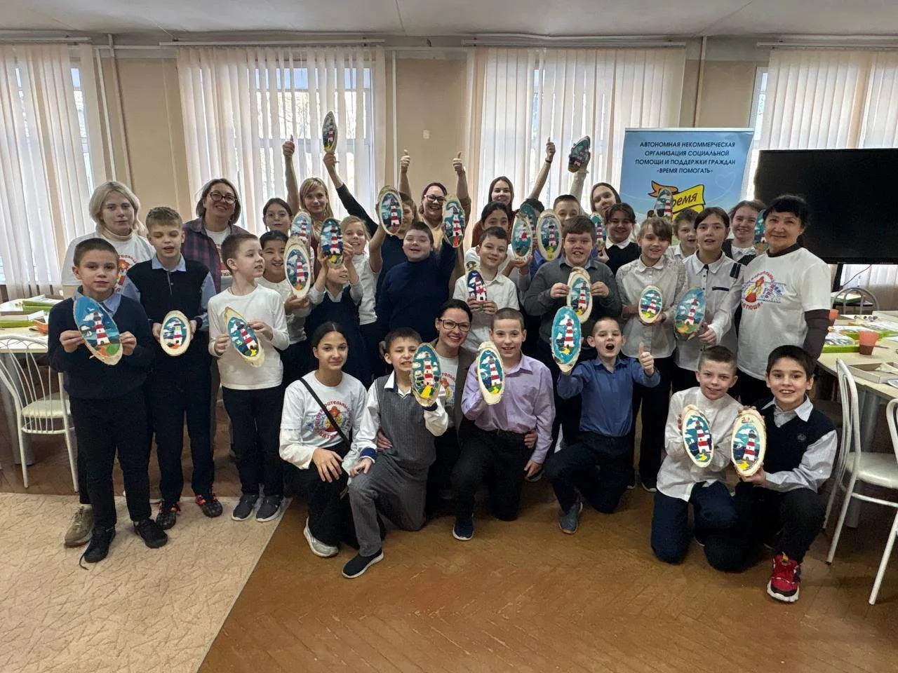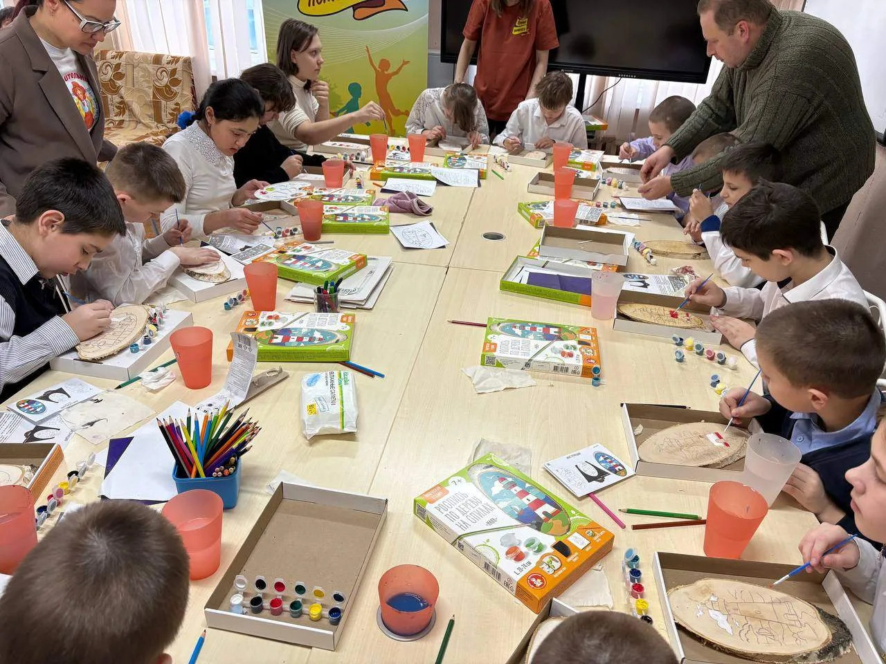 В рамках проекта 50 воспитанников школы под руководством волонтеров расписали деревянные спилы красками. Мероприятие, наполненное яркими эмоциями и радостью для детей, продолжилось чаепитием и вручением подарков.